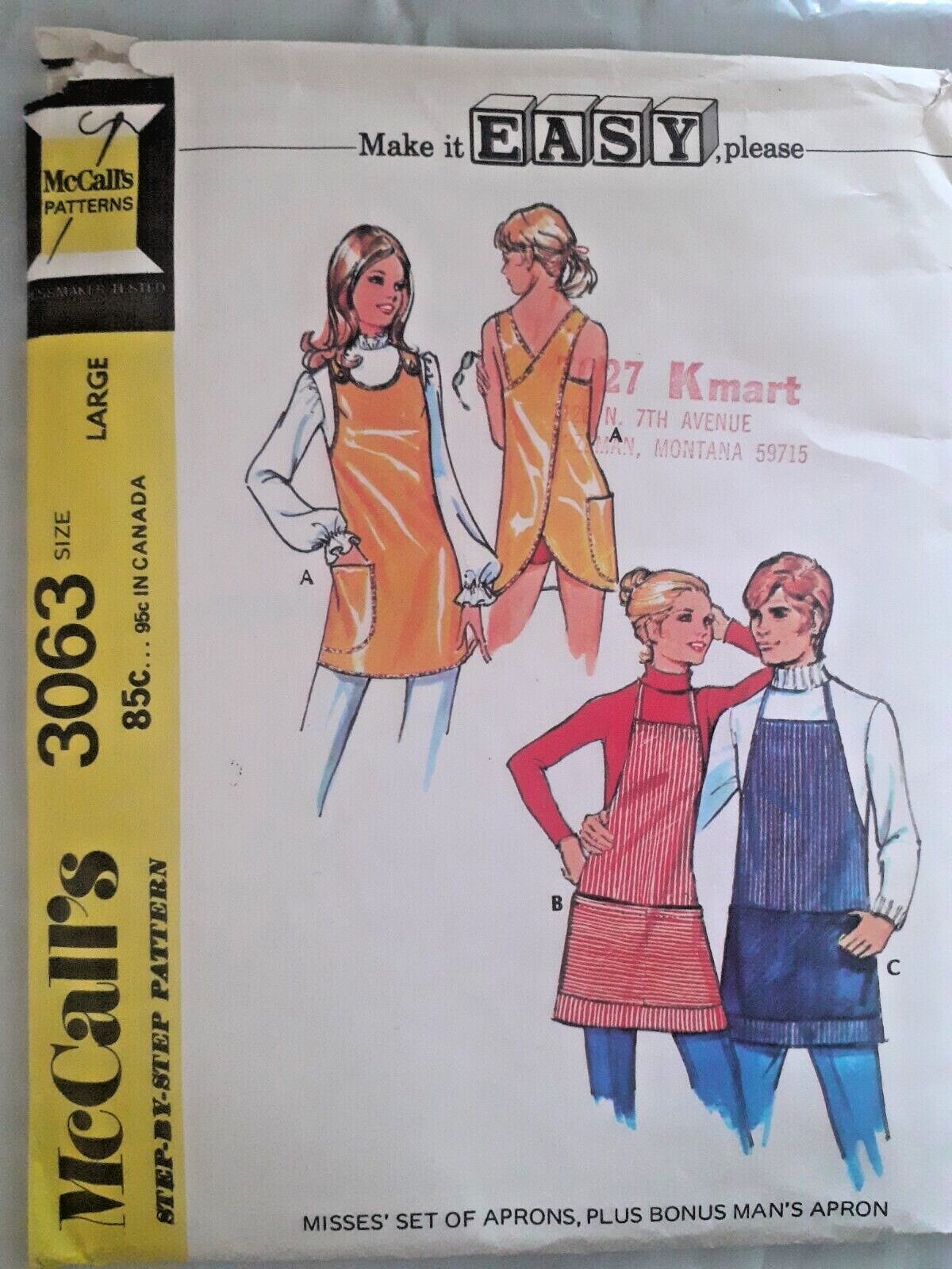 Apron Bib Full Wrap Crossover L Mccalls 3063 Sewing Pattern Cut Mens Ladies Vtg Ebay